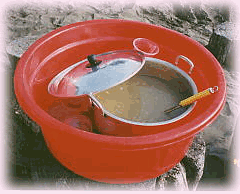 そうこうするうちでっかい鍋になにか運んで来る人が。