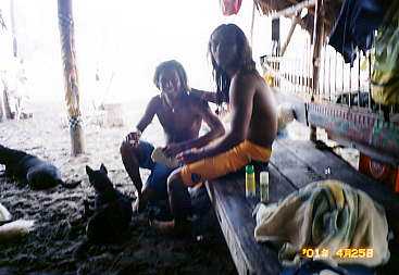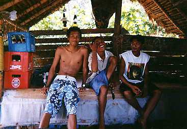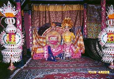 | 22日 今日は結婚式に出席する日! 朝ご飯を食べて、9時に待ち合わせの店の前に。 バリの衣装は一人で着るのが難しいので みんなによってたかって着付けてもらったけど、思ったより暑いし苦しい。 下は化繊の一枚の布を巻いて、ウエストをゴムのコルセットみたいなので 固定するんだけどウエスト53センチのわたしでも相当きつかった。 着付けてもらってから「バリ人に見える?」って聞いたら 「髪が茶色いから見えない。」と言われました。 そういえば男の子は金髪にしてる子とかもいるけど 女の子はたまにせいぜいメッシュ入れてるくらいで 完全な茶髪はみたことなかったな。 それからスッチーの車で結婚式のあるクルンクンへ。 クルンクンは内陸の方なので車でも3時間くらいかかるんだけどよくと スッチーの車は冷房が効かないし、わたしは後部座席の真中にいたのと 暑い衣装を着てるので死ぬかと思うほど苦しかった! 最初は話をしてたけどだんだん無口に・・・。 ようやくクルンクンに到着。 初めて行く地域だったけど、すごく静かできれいなところ。 披露宴は、日本と同じように入り口で名前を記帳して 箱にお祝いのお金入りの封筒をいれます。 そして、お皿を渡されて並べてある好きなお菓子と飲み物を取って 好きな席につきます。 さっそく新郎新婦の写真を2.3枚撮って、フィルムが無くなったので 入れ替えようとしたら、ひぇー間違ってAPSフィルムを買ってる!! ということで、今回の旅行で一番写真を撮りたかった披露宴と クルンクンの風景の写真がありません・・・。ごめん・・・。(ビデオは撮ったよ !) 新郎新婦は派手派手なステージに座ってて、ステージの横には ガムランの演奏をしている人達がいます。 そして、新郎新婦が招待されてる人を順番にまわって写真を撮ったり挨拶をしたり 日本のようにスピーチとか出し物があるわけでもなく ただだらだら続いている感じでした。 しばらくすると料理が出てきて、バイキング方式でお皿に好きな料理を取って 食べます。 特にこれで終わりっていうのもなく、ほんとに延々だらだら続きます。 わたし達は食べ終わってから少しして帰りました。 帰りはバリの衣装は脱いだので少しは楽だったけどやっぱり暑い!! 帰る途中、わたしの大好物のランブータンを買いに連れてってくれるって言うので マーケットへ。 カメラがあればよかったんだけど、マーケットはいろんな物が売ってて すごく面白かった。(でもランブータンはなかったけど) 2時過ぎ頃にホテルに戻って来て少し休憩。 それから、わたしがいつも行くポイントに行ってサーフィン友達のみんなに会いまし た。 みんなのとこに走り寄ろうとして木の切り株につまづいてこけてしまい 挨拶より先に「大丈夫?」っていう再会でした。 その時にした怪我はまだむこうずねに残っています。 この日の波は午前中は良かったけど、わたしの行った時間はものすごいダンパーで 友達も誰も入っていませんでした。 わたしも入るのはあきらめて、一時間くらい雑談。。 「明日は朝はいいよ」って言うので翌日一緒に入る約束をして 帰りました。 この日の晩御飯の記憶がないんですがたぶんメキシカンレストランやったかな。 酔ってて階段から落ちて思いきりおしりを打ちました。 そして23日はおやすみ〜!